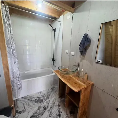 The 1-bedroom Cabana Pinos Magicos Pichil is located 4.4 km from Parroquia Santa Teresa and offers guests to enjoy their evening on a terrace with a swimming pool.